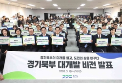 경기뉴스광장 강성규 기자 |김동연 경기도지사가 경기도의 모든 역량을 총동원해 경기북부의 지도를 바꾸고 북부 주민의 삶을 실질적으로 바꾸겠다는 내용의 ‘경기북부 대개발 2040 비전’을 발표했다. 김동연 지사는 18일 성평등 파주 전시·교육관에서 경기북부 대개발 비전 선포식을 열고 “국민주권정부 출범 이후 경기북부는 새로운 도약의 전기를 맞았다”며 “경기도 역시 경기북부에 대한 특별한 구상을 그동안 준비해왔다. 경기북부 대개발 2040 비전을 통해 경기북부의 잠재력을 깨우고 대한민국의 새로운 성장축을 만들겠다”고 말했다. 김 지사는 이어 “경기북부 대개발 2040은 단순한 지역개발 사업이 아니라 무한한 잠재력을 가진 경기북부를 평화와 균형발전, 혁신성장의 중심지로 대전환하는 장기종합발전전략”이라며 “2040년까지 SOC 확충, 산업 인프라 혁신, 중첩규제 혁신 등을 통해 경기북부의 지도와 산업, 북부주민 일상을 완전히 바꾸겠다”고 설명했다. 김 지사는 또 동북부 혁신형 공공의료원의 시계를 2년 앞당겨 2028년 조기착공을 추진하고 아울러 산업단지 조기 분양 지원, 중소기업 금융지원 등 북부경제 활성화를 위한 행정지원도 대폭 강화하겠다는 계획도 발표했다. 김 지