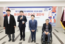 경기뉴스광장 정일수 기자 |화성특례시의회가 26일 화성종합경기타운 3층 라운지홀에서 열린 제72회 경기도체육대회 화성시 선수단 결단식에 참석해 선수단을 격려하고 4연패 달성을 위한 결의를 다졌다. 이날 행사에는 배정수 의장을 비롯해 김종복 문화복지위원장, 송선영·이용운 의원, 화성시체육회 임원과 종목단체 관계자, 선수단 등 150여 명이 참석했다. 이날 결단식은 경기도체육대회 출전을 앞둔 선수단의 사기를 높이고 각오를 다지는 자리로 마련됐다. 화성특례시 선수단은 오는 4월16일부터 18일까지 광주시 일원에서 열리는 제72회 경기도체육대회에 출전한다. 육상, 수영, 축구 등 27개 종목에 참가해 종합우승 4연패에 도전한다. 화성특례시의회는 선수들이 충분한 기량을 펼칠 수 있는 환경을 만드는 데 지속적으로 함께할 계획이다.