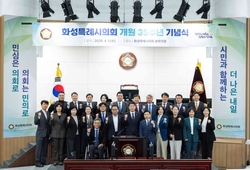 경기뉴스광장 정일수 기자 |화성특례시의회가 1일 개원 35주년 기념식 개최, 지난 의정활동과 성과를 돌아보는 새로운 도약 의지를 다졌다. 이번 기념식은 개원 35주년을 기념하는 영상 상영을 시작으로 기념사와 축사, 기념촬영 순으로 진행됐으며, 시의원과 집행부 공직자 등이 함께해 의미를 더했다. 배정수 의장은 기념사를 통해 “지난 35년은 시민과 함께 걸으며 도시의 성장을 이끌어 온 시간”이라면서 “이제는 규모의 성장을 넘어 시민 삶의 질과 도시의 품격을 높이는 방향으로 나아가야 할 시점”이라고 밝혔다. 한편, 화성특례시의회는 앞으로도 시민 중심의 의정활동을 바탕으로 도시의 지속가능한 발전과 삶의 질 향상을 위한 역할을 이어갈 계획이다.
