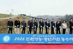 경기뉴스광장 정일수 기자 |안성시가 10일 고삼면 봉산리 소재 고삼저수지에서 한국농어촌공사 주관으로 ‘2026년 안전영농 및 풍년기원 통수식’을 개최했다. 통수식은 한 해 농사의 시작을 알리며, 저수지 수문을 열어 농경지에 용수를 공급하고 무사안녕과 풍년을 기원하는 전통 행사다. 퓨전국악 사물놀이 공연으로 막을 올린 이날 행사는 공식 행사로 내빈 소개, 유공자 감사패 수여, 기념사 및 축사, 격려사 순으로 진행되었다. 이어 본 행사에서는 올 한 해 농사의 풍요를 비는 전통제례 의식과 풍년기원 떡 컷팅식이 진행됐으며, 행사의 하이라이트인 수문 개방 퍼포먼스가 펼쳐졌다. 비상수문이 열리며 폭죽과 함께 시원한 물줄기가 쏟아져 나와 참석자들의 환호와 기대를 모았다. 지난 1963년 준공된 고삼저수지는 총저수량 1610만5000톤 규모의 대형 저수지로, 안성과 평택 일대 2970ha 규모의 농경지에 안정적으로 농업용수를 공급하며 지역 농업의 든든한 버팀목 역할을 해오고 있다.