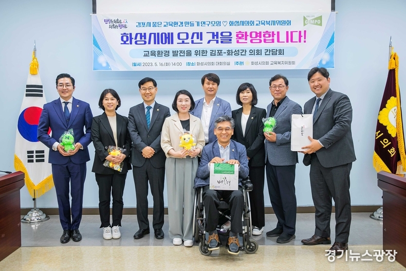 경기뉴스광장 최옥분 기자 |화성시의회 교육복지위원회(위원장 이해남)는 지난 16일 화성시의회 대회의실에서 김포시의회 좋은 교육환경 만들기 연구모임 소속 의원과 간담회를 개최했다.