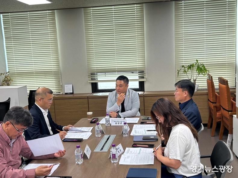경기뉴스광장 최옥분 기자 |김상균 화성시의회 도시건설위원회 의원(더불어민주당·동탄4,5,6)은 지난 30일 의회 3층 집무실에서 승강기 회생제동장치 설치사업 추진 방향을 논의하기 위해 간담회를 개최했다.