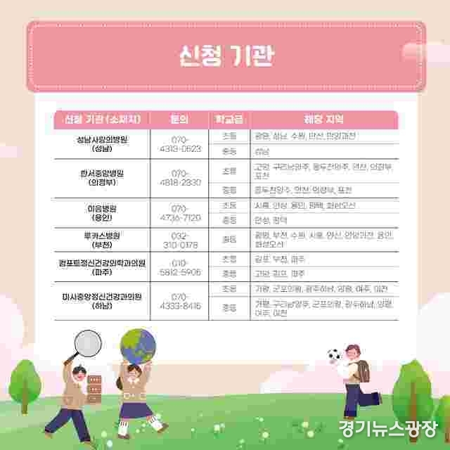 도교육청은 지난해 △한서중앙병원(의정부) △이음병원(용인) △루카스병원(부천), 올해 1월 △성남사랑의병원(성남) 4개 기관을 운영했다. 추가로 △컴포트정신건강의학과의원(파주) △미사중앙정신건강과의원(하남)을 지정해 총 6개 기관을 운영한다.