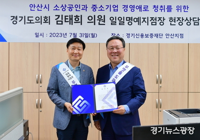 경기뉴스광장 최옥분 기자 |김태희 경기도의회 경제노동위원회(더불어민주당·안산2)의원는 지난달 31일 경기신용보증재단(이하 ‘경기신보’)안산지점 일일명예지점장으로 나서 지역경제 현장에서 중소기업, 소상공인이 당면하고 있는 고충을 직접 청취했다.
