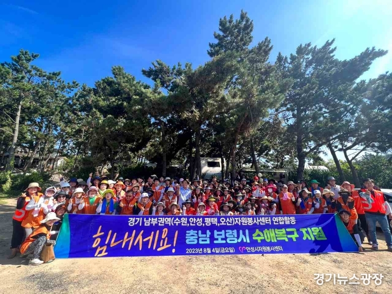 경기뉴스광장 최옥분 기자 |4일 안성, 수원, 평택, 오산 등 경기 남부권역 자원봉사센터 4곳이 연합해 충남 보령시 구치 해수욕장에서 환경 정화 자원봉사활동을 진행했다.