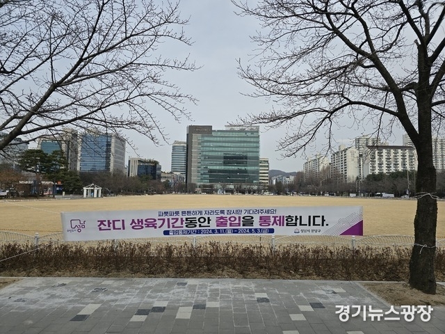 경기뉴스광장 최옥분 기자 |성남시는 봄철 잔디 발아 시기를 맞아 분당구청 앞 잔디광장 출입을 5월3일까지 전면 제한한다고 13일 밝혔다.