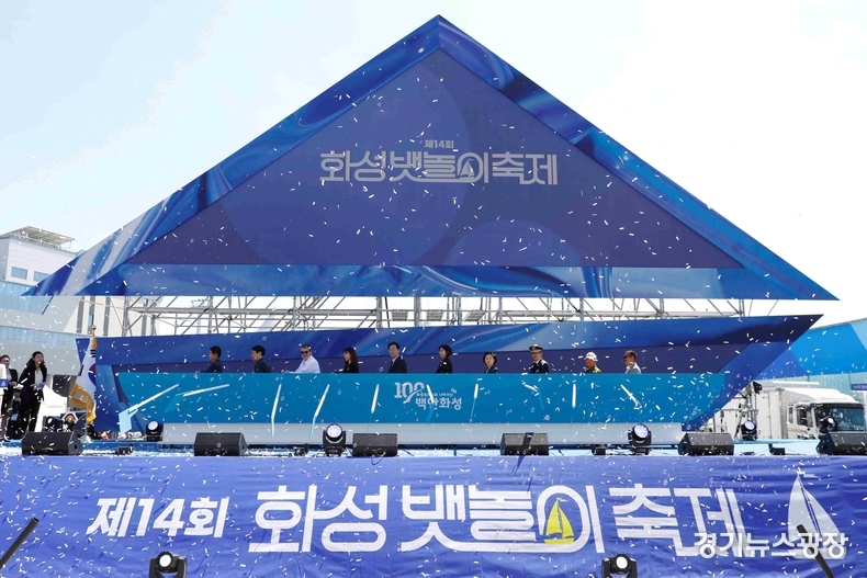 이날 전곡항 메인무대에서 열린 개막식에서는 축제의 포문을 여는 정명근 화성시장의 개막 선언에 이어 100만 화성시민과 함께 배를 타고 세계로 나아가는 뱃놀이 축제의 미래 비전을 상징하는 ‘노 젓기 세리머니’가 진행됐다.