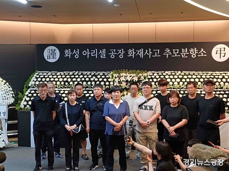 경기뉴스광장 최옥분 기자 |지난 24일 오전 화성시 서신면 전곡리 ‘아리셀’공장 화재로 인해 23명의 목숨을 유가족 중 중국 국적 유가족이 28일 화성시청 로비에 마련한 추모분양소를 찾아 입장문을 발표했다. 17명의 유가족 가운데 4명을 공동 대표로 하는 유가족이 ‘합동협의회’를 구성해 공동 대응하기로 했다.