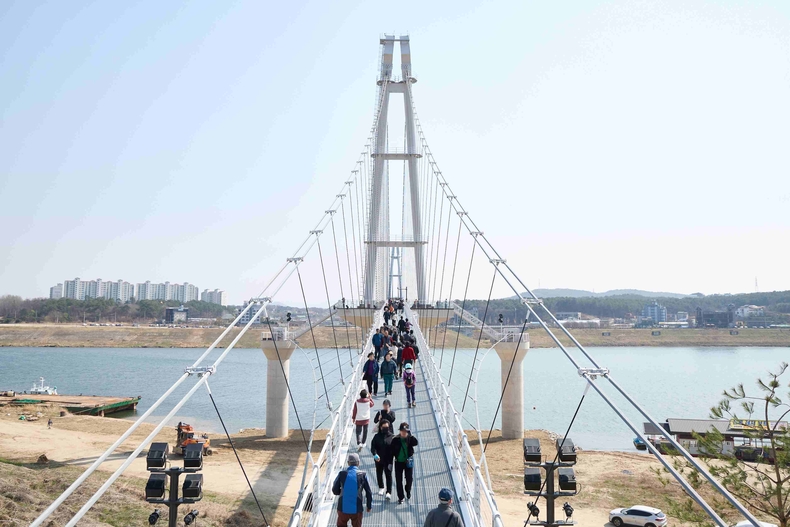 경기뉴스광장 강성규 기자 |경기도 지역균형발전사업으로 조성된‘여주 남한강 출렁다리’가 지난 1일 정식 개통했다.