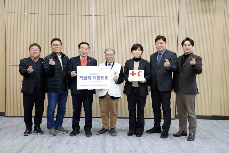 경기뉴스광장 정일수 기자 |수원특례시의회(의장 이재식)는 지난 12월31일 수원시의회 다목적라운지에서 2026년 적십자 특별회비 전달식을 진행했다.