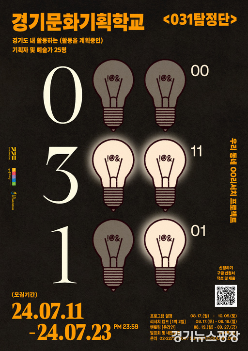 경기뉴스광장 최옥분 기자 |경기문화재단이 오는 23일까지 ‘경기문화기획학교 031탐정단’참여자를 모집한다. 031탐정단은 리서치, 이론 및 실습을 내용으로 문화 기획과정을 다루는 지역문화 매개자 역량강화 교육 프로그램이다.