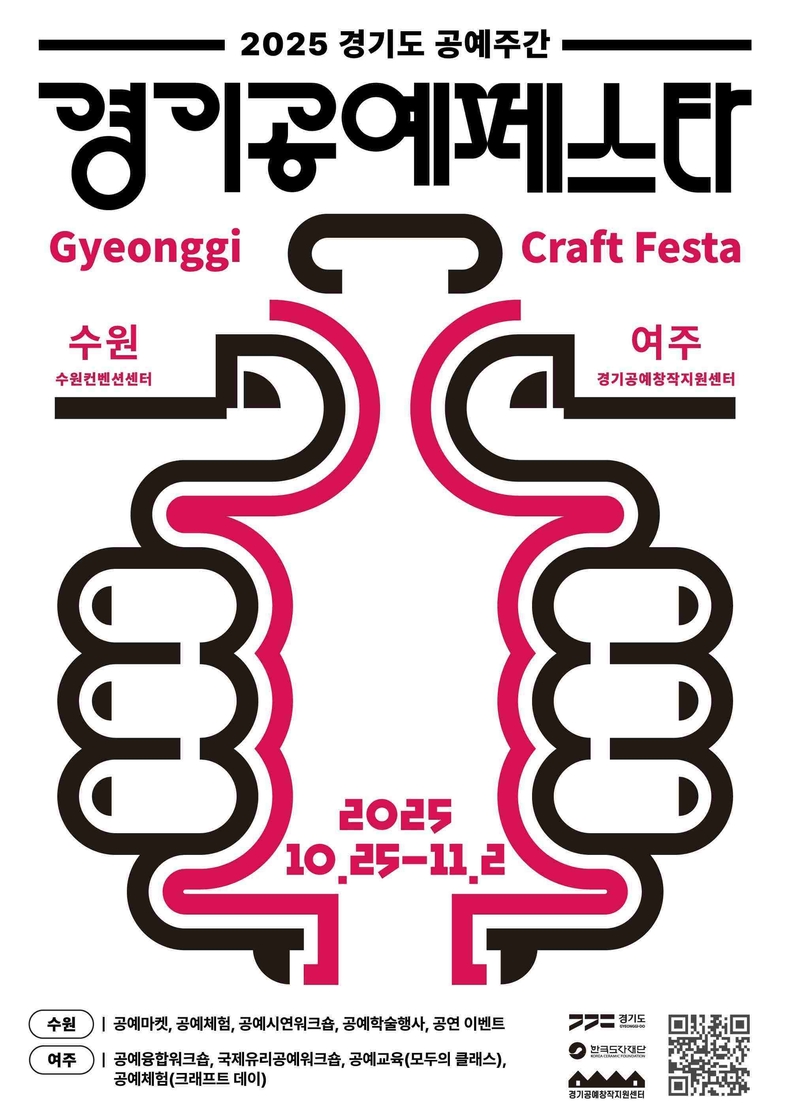 경기뉴스광장 강성규 기자 |한국도자재단이 10월25일부터 11월2일까지 수원컨벤션센터(수원)와 경기공예창작지원센터(여주)에서 ‘2025 경기도 공예주간’의 대표 행사인 ‘경기공예페스타’를 개최한다.