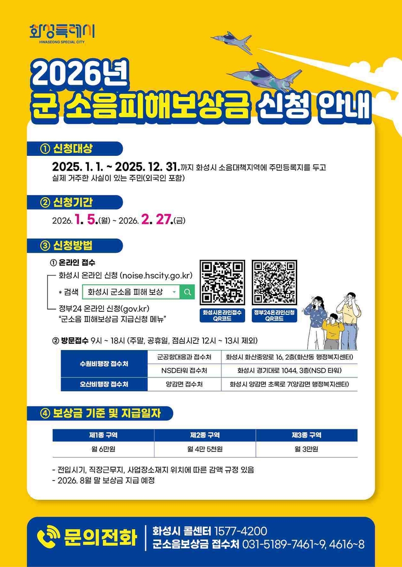 한편, 2025년도 화성특례시 군 소음피해보상금은 3만1190명을 대상으로 약 71억원이 지급됐다.