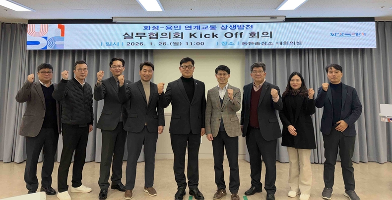 경기뉴스광장 정일수 기자 |화성특례시와 용인특례시가 26일 동탄출장소 대회의실에서 ‘화성–용인 연계교통 상생발전 실무협의회’ 킥오프(Kick-off) 회의를 개최하고, 양 도시 간 연계교통 현안에 대한 본격적인 공동 논의에 착수했다.
