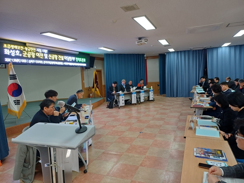 토론은 이우신 서울대학교 명예교수가 좌장을 맡아 진행됐으며, 정호영 법무법인 로고스 변호사, 황성현 경기국제공항백지화공동행동 집행위원장, 이상환 범대위 상임위원장, 장동빈 경기환경운동연합 정책위원장이 참여해 환경적 타당성, 법·제도적 쟁점, 주민 수용성, 항공안전 문제 등을 중심으로 다양한 의견을 제시했다.