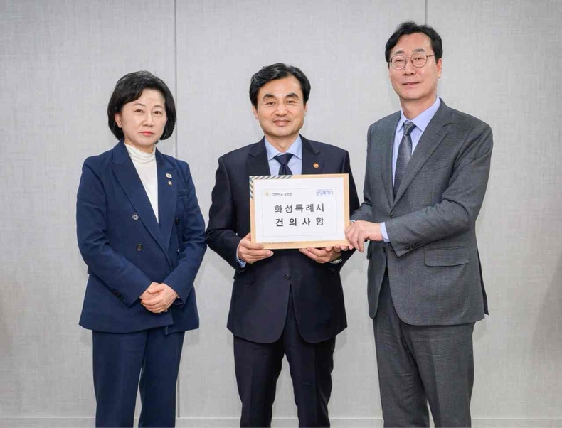 경기뉴스광장 정일수 기자 |화성특례시가 11일 서울 용산구 국방부장관실에서 안규백 국방부장관을 면담하고, 106만 화성시민의 염원을 담아 수원군공항 예비이전후보지 화옹지구 지정철회와 사업전면 재검토를 요구하는 건의문을 전달했다.