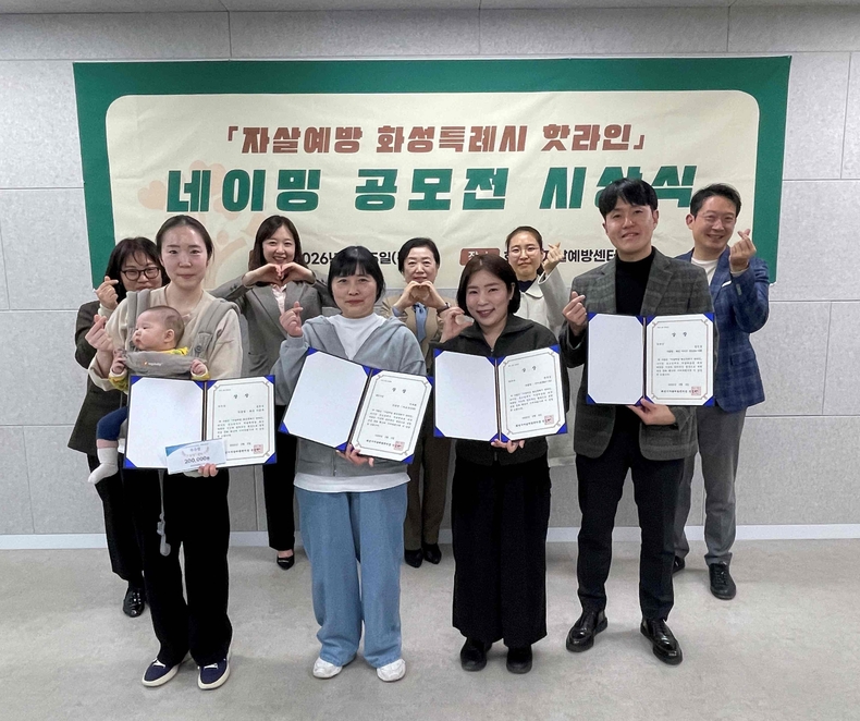 시에 따르면 지난해 12월8일부터 19일까지 진행한 ‘화성특례시 자살예방 핫라인 네이밍 공모전’에 총 174점의 작품이 출품, 심사를 거쳐 5개 수상작을 선정하는 등 시민들의 높은 관심 속에 공모전을 마무리했다.