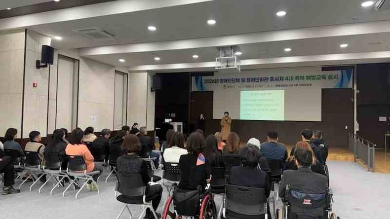 경기뉴스광장 정일수 기자 |평택시가 지난 11일 평택시 장애인회관에서 장애인단체와 장애인회관 종사자들이 시민을 대상으로 하는 폭력 예방 교육인 ‘4대폭력 예방교육’을 수강했다고 12일 밝혔다.