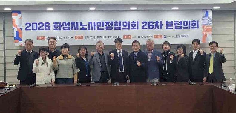 경기뉴스광장 정일수 기자 |화성시노사민정협의회가 18일 동탄2 인큐베이팅센터에서 제26차 본협의회를 열고 지역 노동 현안과 산업안전 중심의 주요 사업계획을 논의했다.