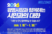 경기뉴스광장 정일수 기자 |박승원 광명시장이 시민주권을 시정의 중심에 두고 지속가능한 광명의 미래를 시민과 함께 완성하기 위해 현장 행보에 나선다. 시는 오는 19일부터 30일까지 관내 19개 동에서 순차적으로 ‘시민과의 대화’를 진행한다고 15일 밝혔다. ‘시민과의 대화’는 시민 누구나 시장과 직접 소통할 수 있는 열린 자리로, 시정 전반에 대한 운영 방향을 공유하고 생활 속 불편과 지역 현안에 대한 시민의 의견을 현장에서 듣는 광명시의 대표적인 시민 소통 행사다. 박 시장은 19일 오전 광명1동 방문을 시작으로 평일 1~2개 동을 방문한다. 지역 현안 관련 부서장들도 동행해 시민들과 소통하고 현장에서 제안된 민원 해결 방안을 함께 모색할 예정이다. 특히, 시민의 삶을 지탱하는 기본사회, 지속가능한 도시로 나아가는 미래 전략을 중심으로 2026년 시정 운영 구상을 시민들에게 직접 설명한다. 시는 지난해 전국 최초로 기본사회 조례를 제정한 데 이어 올해는 이를 바탕으로 유아부터 어르신까지 생애주기별 시민 권리를 한층 더 강화한다. 첫돌축하금 지원액 증액, 청년 전∙월세 대출이자 지원 대상 연령 확대, 대상포진 예방접종과 경로 목욕·이·미용권 지원 대상을 70