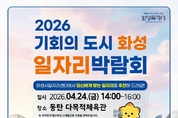 경기뉴스광장 정일수 기자 |화성특례시가 오는 24일 동탄 다목적체육관에서 구인 기업의 인력난 해소와 구직자의 성공적인 취업을 지원하기 위한 ‘2026년 화성시 일자리박람회’를 개최한다고 15일 밝혔다. 이번 박람회는 화성특례시 출범 이후 강화된 지역 경제의 역동성을 바탕으로, 기업과 구직자 간 실질적인 매칭을 통해 체감도 높은 고용 성과를 창출하기 위해 마련됐다. 행사에는 인텍전기전자㈜, ㈜코리아인스트루먼트, ㈜범천정밀, ㈜오케이로지웰, 한강식품㈜ 등 지역 내 우수 기업 20여 개사가 참여한다. 제조·운수·서비스 등 다양한 산업 분야에서 총 250여 명을 채용할 예정이며, 청년층은 물론 중장년과 경력단절 여성까지 전 연령층에 걸쳐 폭넓은 취업 기회를 제공할 계획이다. 현장에서는 구인·구직자 간 1:1 면접이 진행되며, 구직자의 취업 역량 강화를 위한 다양한 부대행사도 함께 운영된다. 전문 상담사의 이력서 및 자기소개서 컨설팅을 비롯해 △이력서 사진 촬영 △노무·법률 상담 △프레디저 적성검사 등 맞춤형 취업 지원 서비스를 원스톱으로 제공한다. 화성시일자리센터는 유관기관과 협력해 국민취업지원제도와 계층별 일자리 지원사업 등 주요 고용 정책을 안내할 예정이다. 특