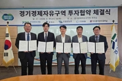 경기뉴스광장 강성규 기자 |경기경제자유구역청은 15일 경기경제청 8층 회의실에서 평택시 및 자동차부품, 반도체, 화학 제조기업 5개사(㈜왕성이노텍, 조양메탈㈜, ㈜광석인터내셔날/그 외 2개 기업 서면 협약)와 평택 포승(BIX)지구 산업시설용지 투자협약을 체결했다. 협약식에는 김능식 경기경제자유구역청장, 이성호 평택시 부시장, 김재균 경기도의원, 협약기업 대표 등이 참석했다. 이번 협약을 통해 5개 기업은 총 640억원 규모의 투자를 진행하며, 포승지구 내 4만3000여㎡ 부지에 자동차 내·외장재 부품, 자동차용 배터리 케이스, 자동차 부품 볼트·너트, 화학제품, 반도체 산업용 질량유량 제어기 등의 생산시설을 구축할 예정이다. 이를 통해 107명의 신규 일자리가 창출되며, 평택 포승지구는 자동차용 부품 및 화학, 반도체 소재 기업 집적화를 통한 첨단 제조 산업 클러스터를 구축할 예정이다. 협약기업인 ㈜왕성이노텍(대표 왕성호)은 자동차 내·외장재 부품을 생산하는 기업이며, 금형 및 사출을 기반으로 한 정밀 제조 역량을 보유하고 있고, 에너지 선도 지정 기업으로서 미래 모빌리티 산업 분야 핵심 기술 개발을 선도하고 있다. ㈜광석인터내셔날(대표 김규식)은 정밀 화