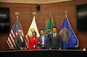 경기뉴스광장 정일수 기자 |평택시가 미국 워싱턴주 타코마시와 시애틀 항만청을 잇따라 방문하며 지역 협력 확대에 나섰다. 정장선 평택시장과 강정구 평택시의회 의장은 23일(현지시간) 타코마 시청을 찾아 빅토리아 우더즈 타코마 시장과 면담을 가졌다. 이 자리에서 양측은 최근 체결된 애니 라이트 스쿨(Annie Wright Schools)과의 국제학교 설립 MOU를 계기로, 교육 협력을 넘어 문화·경제·물류 등 도시 전반에 걸친 협력 기반을 마련하자는 데 의견을 모았다. 정 시장은 “타코마는 한국전쟁 이후 형성된 한국계 커뮤니티의 뿌리가 깊은 도시이고, 평택은 미국의 해외 주둔 기지 중 최대 규모인 캠프 험프리스가 위치한 도시”라면서 “양 도시는 역사와 현재 모두에서 한미 동맹의 상징적 의미를 가진다”고 강조했다. 실제로, 워싱턴주에는 한국계 인구가 10만명 정도가 거주하고 있으며, 이 가운데 상당수가 타코마·시애틀을 포함한 퓨젯 사운드 지역에 집중돼 있다. 이어 평택시 대표단은 오후에 시애틀 항만청(Northwest Seaport Alliance)을 방문해 항만 관계자들과 물류 협력 방안을 논의했다. 현재 타코마항에는 평택항에서 출항한 현대글로비스 차량 운반선이