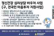 경기뉴스광장 정일수 기자 |평택시가 지난 2025년 전국민 마음투자 지원사업의 효과성을 평가하고 서비스 질적 향상을 도모하기 위하여 서비스 이용 시민을 대상으로 만족도 조사를 진행한 결과 90.3점 긍정적으로 평가했다. 2일 시에 따르면 ‘전국민 마음투자 지원사업’은 우울·불안 등 정서적 어려움이 있는 시민에게 대화 기반의 심리상담 이용권(바우처) 서비스를 총 8회기 지원하는 국가 정신건강 지원사업이다. 평택시는 2025년 한해 965명의 시민이 심리상담 서비스를 이용했으며, 지난 1월5일부터 18일까지 이용자 전원을 대상으로 익명으로 진행한 만족도 조사에서 269명의 이용자가 응답하였고, 서비스 전문성과 만족도 분야 등 총 10개 문항에서 100점 만점에 평균 90.3의 높은 점수로 긍정적인 평가를 나타냈다. 특히, 서비스 재이용 의사 여부를 묻는 문항에 91.8점으로 가장 높은 평가를 받았고, 타인에게 서비스 추천 여부 91.7점, 상담 결과 정신건강에 도움이 됐다는 90.6점으로 나타났다. 이용 소감으로는 ‘속마음을 털어놓으니 마음의 짐이 줄어든거 같다’, ‘불안이 사라지고, 안정감을 되찾았다’, ‘화를 다스리고 다른 사람들과 화합하는 방법을 깨우치겠다