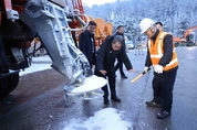 경기뉴스광장 강성규 기자 |1일 저녁부터 2일 아침 사이 경기도 전역에 올겨울 들어 가장 많은 눈이 내린 가운데 김동연 경기도지사가 수원 시내를 돌며 제설현황과 도민들의 출근 상황을 점검했다. 김동연 지사는 먼저 2일 아침 7시 반경 수원시 영통구 하동에 위치한 수원 제설전진기지를 찾아 밤사이 제설 현황을 살핀 후 대기실에서 작업자들과 담소를 나눴다. 김규식 경기도 안전관리실장으로부터 제설 현황을 보고 받은 김 지사는 “밤새 밤잠 설쳐가며 제설 작업에 임하시느라 고생이 많으셨다”면서 “근무하면서 불편하시거나 부족한 것은 없으신지” 라고 격려했다. 자리를 함께한 작업반장은 “딱히 불편한 점은 없다. 이른 시간에 찾아와주셔서 감사하다”고 말했다. 김 지사는 제설 현황 점검에 이어 인근 버스정류소를 찾아 출근길을 교통 상황도 점검했다. 버스정류장 온열벤치 등 시설물들을 살펴 본 김 지사는 도민들에게 ‘밤새 눈이 꽤 왔는데 아침에 출근하는 데 크게 불편은 없으신지?’ 등을 물으며 잠시 소통하는 시간을 가졌다. 도민들은 ‘눈이 왔는데도 평상시와 다르게 막히지 않아 불편함은 없다’, ‘다른 날과 다르지 않다, 지연 없이 버스가 잘 오고 있다’는 등의 반응을 보였다. 경