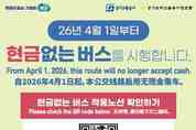 경기뉴스광장 강성규 기자 |경기도가 오는 4월1일부터 ‘현금없는 버스’를 성남과 용인 등 80개 노선으로 확대 운영한다고 5일 밝혔다. 도는 현금함 운영에서 발생하는 운행지연, 요금실랑이, 안전사고 등의 문제를 줄이기 위해 지난해 7월부터 수원 등 5개 노선에서 현금없는 버스를 시범 운영한 바 있다. 도는 현금 관리 비용 절감 등 효과 확대를 위해 올해 대상 노선을 시범사업 노선 5개를 포함해 80개 노선으로 확대한다. 80개 노선은 성남 333번· 파주시 7200번 등 광역버스 41개, 용인 77번·구리 75-1번 등 시내버스 39개 노선이다. 현금 사용자의 혼란을 최소화하기 위해 3월 초부터 해당 노선의 차량과 정류소에 홍보 포스터와 안내문을 붙이고 경기버스정보어플 등을 통해 적극 알릴 계획이다. 교통카드 분실 및 카드 오류가 있는 등 현금 사용이 필요한 경우에도 버스 내 비치된 요금 납부안내서를 통해 계좌이체가 가능하기 때문에 현금함이 없다고 전혀 당황할 필요가 없다.