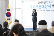 경기뉴스광장 정일수 기자 |안성시가 지난 24일 도기동 소재 라오웨딩홀에서‘2025년 국가보훈대상자 위로연’을 개최했다고 25일 밝혔다. 이날 행사는 김보라 안성시장이 관내 보훈대상자 500여 명을 모시고 위로하는 자리로 식전공연으로는 가수 양재기가 품바 공연으로 보훈어르신들의 향수를 불러일으켜 흥을 돋우고 관내 어린이집 원아들이 보훈대상자에게 감사의 마음을 나누는 특별공연이 이어져 세대가 함께 감사의 마음을 나눌 수 있는 시간을 가졌다. 이번 위로연 행사에는 다양한 체험부스를 운영하였는데 안성시 보건소 금연크리닉, 안성시 정신건강복지센터 어르신 자살예방프로그램, 안성시 청춘놀이터 운동교실, 안성시치매예방 함께해孝(효), 안성성모병원 등 어르신이 평소 관심 많은 사업이나 프로그램 홍보부스를 운영해 어르신의 겨울철 건강관리 유의사항 등을 안내했다. 또한, 어르신의 신체활동을 돕고 재미를 더하기 위해 룰렛다트, 탁구공 농구 등으로 신체활동 체험부스도 운영했다. 행사에 참석한 보훈단체 한 회원은 “품바공연도 재미있었고 평소 치매 프로그램 가입 방법을 몰라 참여하지 못했는데 위로연 행사에 참석해 가입하게 돼 좋은 기회를 만들어준 안성시가 일을 잘하고 있다고 느꼈다”