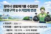 경기뉴스광장 정일수 기자 |평택시가 도시환경 변화와 인구증가에 따른 생활폐기물 처리 수요 증가에 대응하기 위해 생활폐기물 수집 운반 운영체계를 전면 개편한다고 30일 밝혔다. 이번 개편은 지난 1995년 평택시·송탄시·평택군 통합 이후 유지돼 온 기존체계를 변경하는 것으로, 더 촘촘한 수거망 구축과 신속한 청소 민원 대응을 위해 추진된다. 주요 변경내용은 생활폐기물 수집·운반 대행 구역을 기존 5개 구역에서 9개 구역으로 확대·개편하고, 9개 생활폐기물 수집·운반업체를 통해 운영하는 것이다. 이를 통해 권역별 수거 책임성을 강화하고 효율성을 높일 계획이다. 개편된 운영체계는 2026년 1월1일부터 시행된다. 평택시는 청소구역 전면 변경에 따라 시행 초기 일시적인 혼란이 발생할 수 있는 만큼 현장 점검과 민원 대응을 강화해 조기 안정화에 총력을 기울일 방침이다. 시 관계자는 “이번 운영체계 개편은 시민 생활과 밀접한 청소행정의 질을 한 단계 높이기 위한 조치”라면서 “생활폐기물 수거는 기존과 동일하게 정상 운영되며, 시민 불편이 발생하지 않도록 철저히 준비해 쾌적한 도시환경을 만들어 가겠다”고 밝혔다.