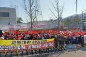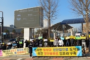 경기뉴스광장 정일수 기자 |16일 오후 화성시청 정문에서 “편리한 일상과 신산업으로 도약을 위한 첨단물류로 인프라를 구축하라”며 동탄 유통3부지 개발을 찬성하는 시위를 하고 있다. [사진=정일수 기자]