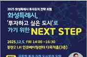경기뉴스광장 정일수 기자 |화성특례시가 ‘2025 화성특례시 투자유치 전략 포럼’을 다음 달 5일 동탄2 인큐베이팅센터 다목적홀에서 개최한다. 이번 포럼은 화성특례시에서 처음으로 개최되는 투자유치 전략 포럼으로 ‘화성특례시, 투자하고 싶은 도시로 가기 위한 넥스트 스텝(NEXT STEP)’을 부제로 개최된다. 포럼은 그동안 화성특례시가 거둔 투자유치 성과를 토대로 향후 화성특례시의 지속가능한 투자 성장 동력을 마련하기 위한 것으로, 특별강연과 포럼 순으로 진행된다. 특별 강연에서는 김광석 한국경제산업연구원 경제연구실장이 ‘글로벌 투자 집적 도시로의 도약: 어떻게 기업을 유치할것인가?’를 주제로 글로벌 산업 변화 속에서 화성특례시가 경쟁력을 확보하기 위한 투자유치 전략 방향을 제시할 예정이다. 이어지는 포럼 세션에서는 ‘초격차 도시를 향한 화성특례시 투자유치 패러다임 전환’이라는 주제로 홍사흠 국토연구원 연구위원의 발제와 전문가 6인의 토론이 진행된다. 이번 포럼은 기업인을 비롯해 유관기관, 관련 전문가, 공직자, 관심있는 시민 등이 참여할 수 있으며, 포스터 내 QR코드를 통해 사전 참가 등록이 가능하다. 조한용 투자유치과장은 “이번 포럼은 투자유치 현황을