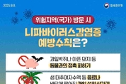 경기뉴스광장 정일수 기자 |오산시는 질병관리청이 지난 8일 니파바이러스감염증을 제1급감염병으로 신규 지정함에 따라 시민들에게 감염예방수칙 준수와 개인위생 관리에 철저를 기해줄 것을 당부했다. 니파바이러스감염증은 현재 국내 유입 가능성은 낮지만 인체 감염 시 치명률이 40~75%에 달하는 것으로 알려져 있어 철저한 관리가 필요한 신종감염병이다. 니파바이러스는 사람과 동물 모두에 감염될 수 있으며, 감염된 동물(과일박쥐, 돼지 등)과의 접촉이나 오염된 식품(대추야자수액 등) 섭취를 통해 전파될 수 있다. 또한 환자의 체액과 밀접 접촉 시 사람 간 전파도 가능하다. 특히, 최근 환자 발생이 지속되고 있는 검역관리지역인 인도와 방글라데시를 방문한 여행객은 귀국 후 14일 이내에 발열, 두통, 인후통 등 의심 증상이 나타날 경우 질병관리청 콜센터 또는 관할 보건소로 즉시 신고해야 한다. 예방을 위해서는 △야생동물과의 접촉 피하기 △오염된 음료·식품 섭취 금지 △환자와 직접 접촉 피하기 △손 씻기 등 개인위생 관리 철저가 필요하다. 김태숙 오산시보건소장은 “코로나19 경험을 통해 신종감염병에 대한 선제적 대응의 중요성이 높아진 만큼 이번 니파바이러스감염증의 제1급감염병