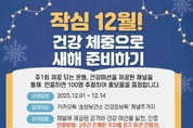 경기뉴스광장 정일수 기자 |평택시 송탄보건소가 건강한 생활 습관으로 새해를 맞이할 수 있도록 오는 12월1일부터 2주간 ‘작심 12월! 건강 체중으로 새해 준비하기’ 챌린지를 운영한다고 28일 밝혔다. 프로그램은 시민 누구나 일상에서 쉽고 재미있게 실천 할 수 있는 걷기와 비만예방 퀴즈 참여를 통해 건강체중 유지에 도움을 주기 위해 마련됐다. 이번 챌린지는 카카오톡 채널 ‘송탄보건소 건강정보톡’을 추가한 시민이라면 별도의 신청 없이 자유롭게 참여 가능하며, 2주 동안 주 1회씩 안내되는 걷기미션과 건강미션 등 총 4가지 미션을 모두 수행한 후, 카카오톡 채널 내 퀴즈 또는 사진 인증 버튼을 통해 인증을 완료하면 된다. 미션을 모두 성공한 참여자 중 추첨을 통해 100명에게 홍보 물품을 제공할 예정이다. 송탄보건소 관계자는 “연말은 건강관리에 소홀해지기 쉬운 시기이지만, 이번 챌린지를 통해 시민들이 건강체중 유지에 대한 인식을 높이고 스스로 건강한 생활 습관을 실천하는 계기가 되길 바란다”면서 “가족, 친구와 함께 참여해 건강생활 실천 분위기를 함께 만들어가길 바란다”고 밝혔다. 송탄보건소는 앞으로도 시민 건강증진을 위한 다양한 생활밀착형 프로그램을 지속적으로