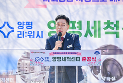경기뉴스광장 정일수 기자 |양평군은 지난 20일 다회용품 세척시설인 ‘리:워시 양평세척센터’ 준공식을 성황리에 개최했다. 이날 행사에는 전진선 양평군수를 비롯해 이승환 한강유역환경청장, 한강유역환경청 수생태관리과장, 지민희 양평군의회 부의장, 양평군 기관·단체장, 읍면 기관·단체장, 개군면 기관·단체장, 하자포2리 마을 주민 등 200여 명이 참석했다. 준공식은 양평청소년문화의집 학생들의 식전 공연을 시작으로 내빈 소개, 경과보고, 표창장 수여, 기념사 및 축사, 색줄 자르기, 기념 촬영, 세척센터 관람 및 시연 순으로 진행됐다. 군은 양평세척센터 준공에 기여한 공로로 함영수 하자포2리 새마을지도자와 윤현정 호재건축사사무소 대표에게 표창장을 수여하며 감사의 뜻을 전했다. ‘다시(RE) 씻어서(WASH) 순환하는 양평’의 의미를 담은 ‘리:워시 양평세척센터’는 2025년 5월 착공해 올해 1월 준공됐으며, 총사업비 32억8300만원이 투입됐다. 이 중 15억1200만원은 한강수계관리기금을 지원받았다. 건축면적 735.94㎡(지상 1층) 규모로 3개 라인의 세척실을 비롯해 건조·살균실, 검수실, 포장실, 보관실 등 위생적이고 체계적인 세척 공정을 갖췄으며, 사
