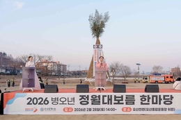 경기뉴스광장 정일수 기자 |평택시의회가 지난 2월28일 매상마을 달맞이 광장에서‘2026년 평택 달맞이 축제’에 참석해 정월대보름 전통문화 계승의 의미를 함께했다. 이날 행사는 평택시의회 강정구 의장을 비롯한 김명숙 부의장, 류정화 산업건설위원장, 김순이 의원과 평택문화원장, 달맞이축제추진위원장, 시민 등 2000여 명이 함께했다. 이번 달맞이 축제에서는 △소원 기원문 △연 만들기 △LED 쥐불놀이 △부럼깨기 등 다채로운 체험 프로그램에 이어 떡국 나눔과 지역 주민이 참여하는 전통공연이 진행됐으며 소망을 담은 달집태우기 행사로 축제의 대미를 장식했다. 한편, 평택 달맞이 축제는 음력 1월15일인 정월대보름에 달집에 소망을 태워보내는 전통문화 행사로 평택문화원이 주최하고 평택시가 후원해 매년 개최되고 있다.