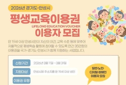 경기뉴스광장 정일수 기자 |안성시가 시민의 평생학습 참여 기회 보장을 위한 교육 정책의 일환으로, 오는 3월11일 오전 10시부터 31일오후 6시까지 올해 1차 경기도-안성시 평생교육이용권 지원사업 대상자를 모집한다고 10일 밝혔다. 이번 사업은 경제적 여건 등으로 학습 참여가 어려운 시민에게 1인당 35만원의 평생교육 수강료 및 교재비를 지원하는 사업이다. 교육부와 경기도, 안성시가 협력해 추진하며, 전담 기관인 경기도평생교육진흥원이 운영을 맡는다. 평생교육이용권은 단순한 교육비 지원을 넘어, 시민의 역량 개발과 자아실현, 사회참여 확대를 위한 실질적 학습 지원 정책으로 자리 잡고 있다. 이번 모집은 △저소득층 대상 일반 이용권 △19~39세 청년 대상 지역특화 이용권(4월 경 모집) △30세 이상 성인 대상 디지털 이용권 △65세 이상 노인 이용권 △등록장애인 대상 장애인 평생교육이용권 등 5개 유형으로 운영된다. 지원금은 평생학습관을 포함한 평생교육이용권 등록기관에서 사용할 수 있으며, 디지털 이용권은 지정된 디지털 사용기관에서 사용 가능하다. 특히, 올해에는 국가장학금 수혜자에 대한 중복지원이 허용되어, 저소득층 대학생 등도 평생교육이용권을 신청할 수