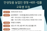 경기뉴스광장 정일수 기자 |안성시농업기술센터가 지역 농업인의 안정적인 영농 활동을 돕기 위해 오는 31일까지 ‘안성맞춤 농업인 경영·세무·법률 교육’ 교육생을 모집한다고 11일 밝혔다. 이번 교육은 전문가 특강을 통해 농가 운영 중 발생할 수 있는 경영적, 법적 문제를 사전에 예방하고 해결할 수 있는 역량을 키워주기 위해 마련됐다. 교육은 오는 4월6일부터 30일까지 주제별 지정된 날짜에 진행된다. 모집 분야는 △농업 경영 △농업 세무 △농업 법률 등 3개 과정이며, 분야별로 30명씩 총 90명을 선발한다. 신청 인원이 초과할 경우 내부 선발 기준에 따라 교육생을 최종 선정할 예정이다. 신청 자격은 농업 경영에 관심 있는 안성시민이라면 누구나 가능하며, 접수는 3월31일까지다.