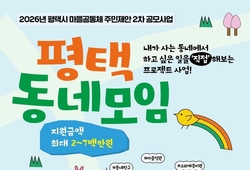 경기뉴스광장 정일수 기자 |평택시가 주민들이 스스로 만들어가는 만남과 소통의 마을 공간에서 지속 가능한 공동체 활동을 지원하기 위해 ‘2026년 평택시 마을공동체 주민제안 2차 공모사업’을 추진한다고 13일 밝혔다. 이번 공모사업은 지난 1차에 이어 추가로 모집하며 마을공동체를 처음 시작하는 씨앗기부터, 2년 차인 성장기, 3년 차인 열매기로 진행되며, 각각 200만원, 400만원, 700만원 이내로 지원한다. 2차에는 추가로 2024년까지 3년 차인 열매기를 마치고도 지속적으로 운영하는 공동체를 위한 확장기와 현재 국가에서 추진하는 ‘햇빛소득마을’에 참여하기 위해 마을 주민들의 뜻을 모으기 위한 활동을 하는 연계형 모델이 처음으로 추진된다. 주민제안 공모사업은 평택시에 거주하거나 생활권을 영유하는 자발적인 주민 모임으로 5인 이상으로 구성돼야 하며, 주민들의 참여를 바탕으로 지역의 육아, 교육, 노인, 주거환경, 문화 등 다양한 영역에서 마을의 문제를 해결하고 발전하는 공동체 활동 프로그램을 지원하게 된다. 시는 1차를 통해 17개 내외의 공동체를 선발하고 있으며, 이번 2차 공모를 통해 10개 내외의 공동체를 추가 선정해 지원할 계획이다. 공모 기간은 오