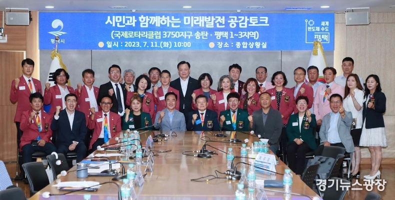 경기뉴스광장 최옥분 기자 |평택시는 지난 11일 국제로타리클럽 3750지구 송탄·평택 1~3지역 회원들과 함께 지역 관심 사항에 대한 의견수렴 및 소통의 시간을 마련하기 위해‘미래발전 공감토크’를 진행했다고 12일 밝혔다.