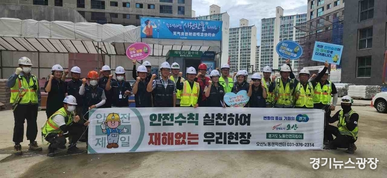 경기뉴스광장 최옥분 기자 |오산시(시장 이권재)는 오산시 노동안전지킴이, 경기도, 안전관리공단이 점검반을 꾸려 관내 건설 현장을 찾아 여름철 안전 수칙 준수에 대한 점검을 실시하고 안전 캠페인을 전개했다고 10일 밝혔다.
