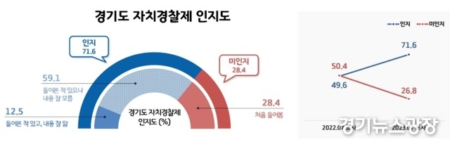 경기뉴스광장 최옥분 기자 |경기도민 10명 중 7명은 자치경찰제에 대해 알고 있는 것으로 나타났다. 이는 지난해와 비교해 22%p가량 상승한 수치다.