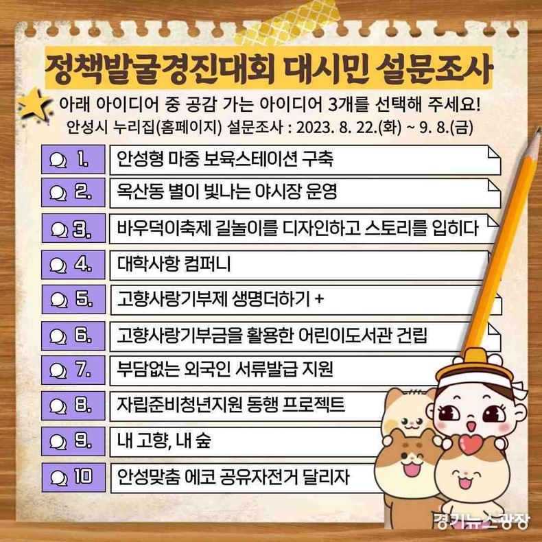경기뉴스광장 최옥분 기자 |안성시는 오는 9월1일부터 15일까지 제11회 2023년 안성시 사회조사를 실시한다.