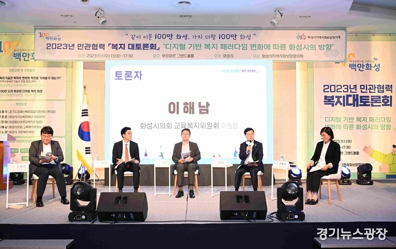 이해남 교육복지위원장과 관련 전문가와 시민이 참석해 100만 도시 화성! 100인 시민 대토론회‘디지털 기반 복지 패러다임 변화에 따른 화성시의 방향’을 주제로 디지털과 복지를 연계한 디지털 복지에 대한 열띤 논의의 장을 가졌다.