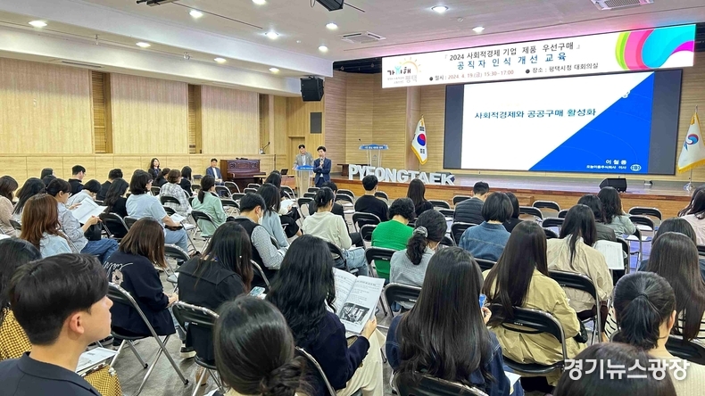 경기뉴스광장 최옥분 기자 |평택시는 지난 19일 평택시청 대회의실에서 ‘사회적경제 기업의 공공기관 판로지원을 위한 공공기관 우선구매 제도 이해’를 주제로 공직자 인식개선 교육을 진행했다고 22일 밝혔다.