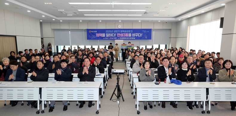 경기뉴스광장 정일수 기자 |안성시 안성3동은 지난 22일 안성3동 행정복지센터 4층 대회의실에서 주민 150여 명이 참석한 가운데‘2026년 상반기 안성3동 정책공감토크’를 성황리에 마무리했다.