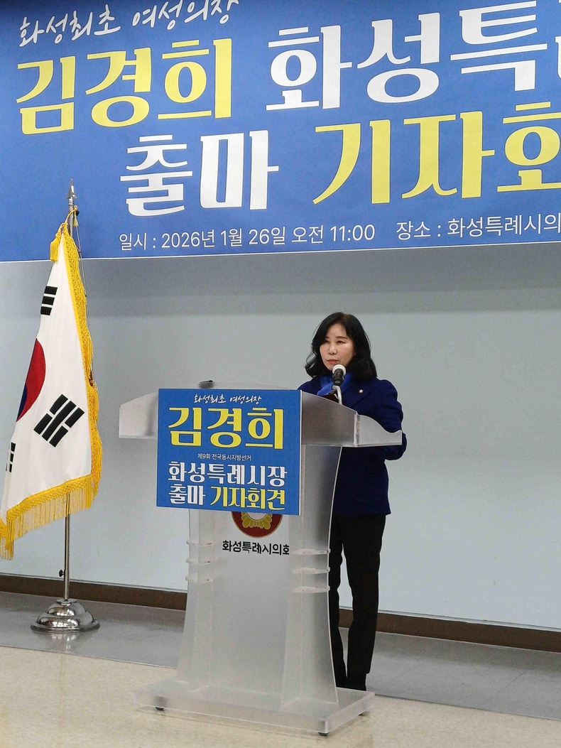 경기뉴스광장 정일수 기자 |김경희 화성특례시의원이 26일 오는 6·3지방선거에 공식 도전장을 내 걸었다.