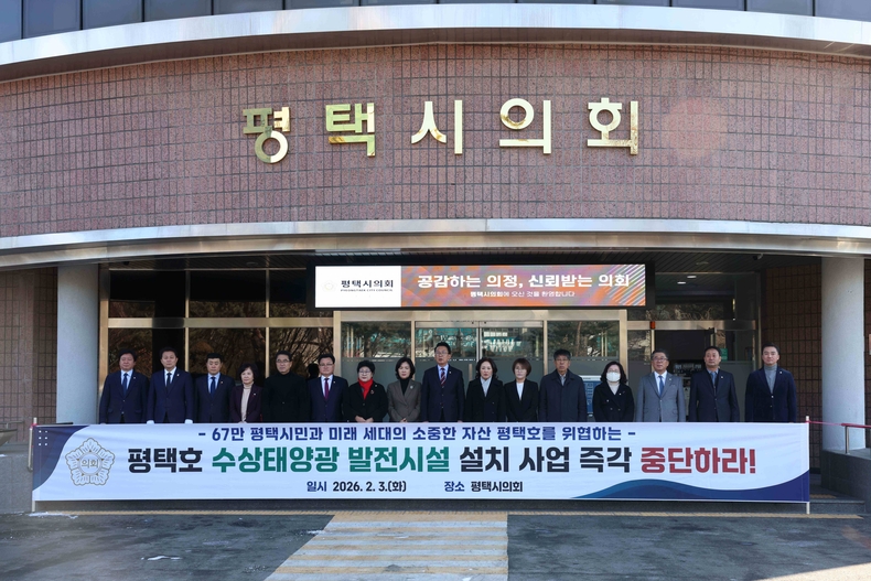 그러면서 “평택시의회 의원 일동은 평택호를 지켜야 할 책무를 가지고 졸속적이고 일방적으로 추진되고 있는 평택호 수상태양광 발전시설 설치 사업을 즉각 중단할 것 요구한다”고 밝혔다.
